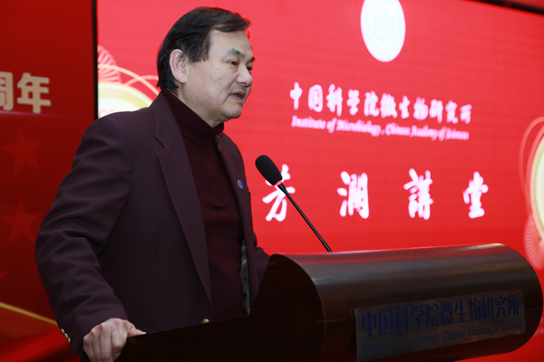 副所长钱韦致辞。他总结了戴芳澜先生一生的科研轨迹,阐释了“芳澜讲堂”所以冠名“芳澜”,正是要在后学中弘扬微生物所创始人、首任所长戴芳澜先生为代表的老一辈科学家精神,即胸怀祖国、服务人民的爱国精神,勇攀高峰、敢为人先的创新精神,追求真理、严谨治学的求实精神,淡泊名利、潜心研究的奉献精神等。他表示,“芳澜讲堂”将永久性举办下去,它在研究所创新文化建设中独树一帜,倡导科学家追求真理、勇攀高峰,同时保有人格的高洁,也即致力于培育和弘扬科学家精神和科学精神。