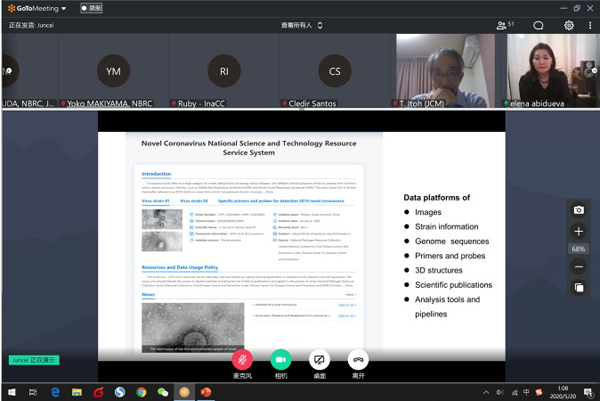 研讨会由中科院微生物所主持的世界微生物数据中心马俊才主任主持,他首先介绍了会议召开的背景以及会议的筹备情况,以及国家微生物科学数据中心和国家病原微生物资源库等单位联合开发的“新型冠状病毒国家科技资源服务系统”、“中国科学院新型冠状病毒肺炎科研文献共享平台”等系统的建设情况。会议邀请全球微生物领域知名专家学者及保藏中心人员以学术报告、自由演讲和讨论等多种形式参与,分享全球保藏中心抗击COVID19现状,共同讨论了面对此次疫情,微生物资源保藏中心在面对病毒株资源保藏、数据资源共享、数据标准、基于生物多样性公约的惠益分享等相关的重要话题,探讨寻求COVID19信息共享与科学研究且保持信息共享和惠益分享之间的平衡,并倡议全球保藏中心与国际组织形成协同合作和沟通机制。