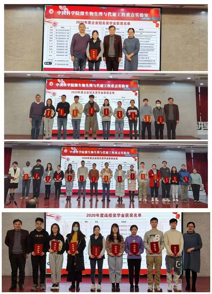 在本届年会上,所党委书记李俊雄、重点实验室主任陶勇、研究生部副处长王文婧、唐双焱、严景华等为获得工业室企业冠名奖学金的段晓敏等25位研究生以及获得战疫奖学金的毕晓珊等10位研究生颁奖并合影。