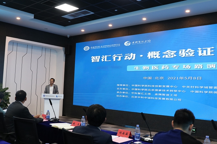 2021年5月8日,由中国科学院科技创新发展中心、中关村科学城管委会指导,中国科学院北京国家技术转移中心、中国科学院微生物研究所主办,中科智汇工场、金隅智造工场承办的“智汇行动”概念验证创新大赛——生物医药专场路演,在中科智汇工场路演厅成功举办。中国科学院微生物研究所所长钱韦、中国科学院北京国家技术转移中心常务副主任赵楠等领导出席活动。