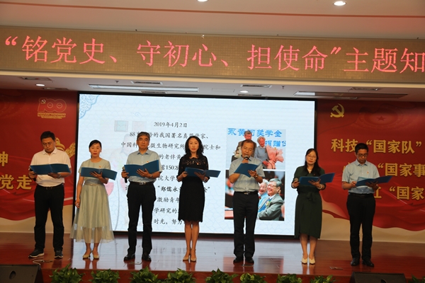 6月29日下午,中国科学院微生物研究所党史学习教育“铭党史、守初心、担使命”主题知识竞赛在E301多功能厅举行。中国科学院党史学习教育第十指导组组长李志毅、组员庞微,所党委书记李俊雄,党委副书记石硕,党委副书记、纪委书记杨永峰,特邀嘉宾方荣祥院士及全所各支部党员群众近200人到场参加了活动。
