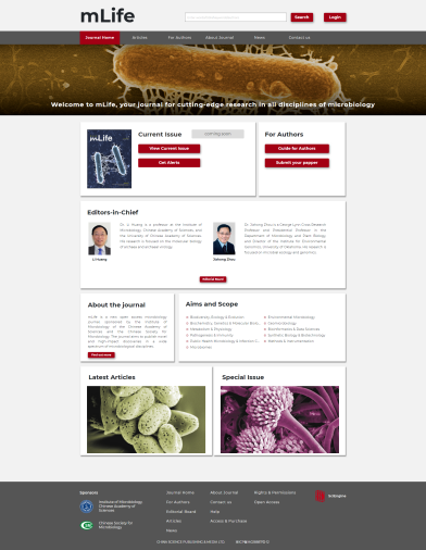 mLife期刊网站建设已初步完成,即将进入接受投稿阶段,欢迎广大海内外微生物学领域科技工作者关注并踊跃投稿。