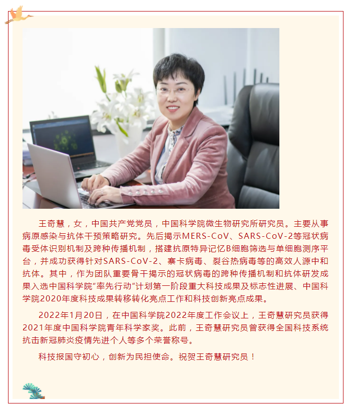 王奇慧研究员获得2021年度中国科学院青年科学家奖