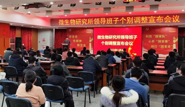 2023年1月4日下午,中国科学院微生物研究所召开了领导班子个别调整宣布会议。院人事局副局长蔡宏志、领导干部二处处长宋琦、微生物所领导班子成员、党委委员、纪委委员、科研、支撑和管理骨干代表等70余人参加了会议,研究所党委书记、副所长王丽萍同志主持会议。
