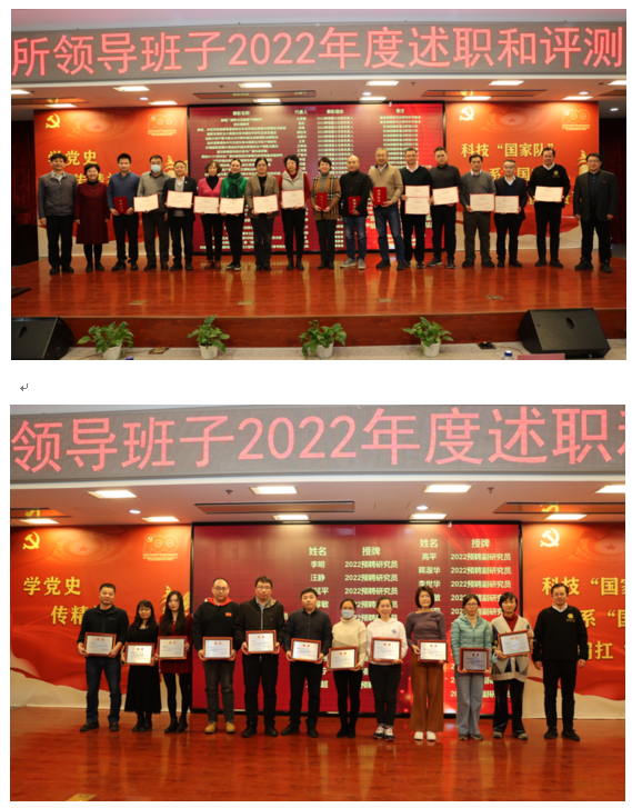 会上,领导班子成员为年度十大科研进展、新增重大任务负责人、重要荣誉获得者和科技成果转化突出贡献代表等优秀职工颁奖,并颁发新晋“预聘-长聘”队列研究员和副研究员证书。近年来,研究所落实事业单位工作人员奖励规定,通过多种形式对做出突出贡献的职工进行表彰,激发使命感和荣誉感;同时,进一步改革研究员和副研究员岗位晋升与考核机制,对聘任的研究员和副研究员试行“预聘-长聘”制度管理,加强青年科技人才培养。这些创新政策的实施将进一步稳定和凝聚人才,促进研究所向“两加快一努力”的更高目标迈进。