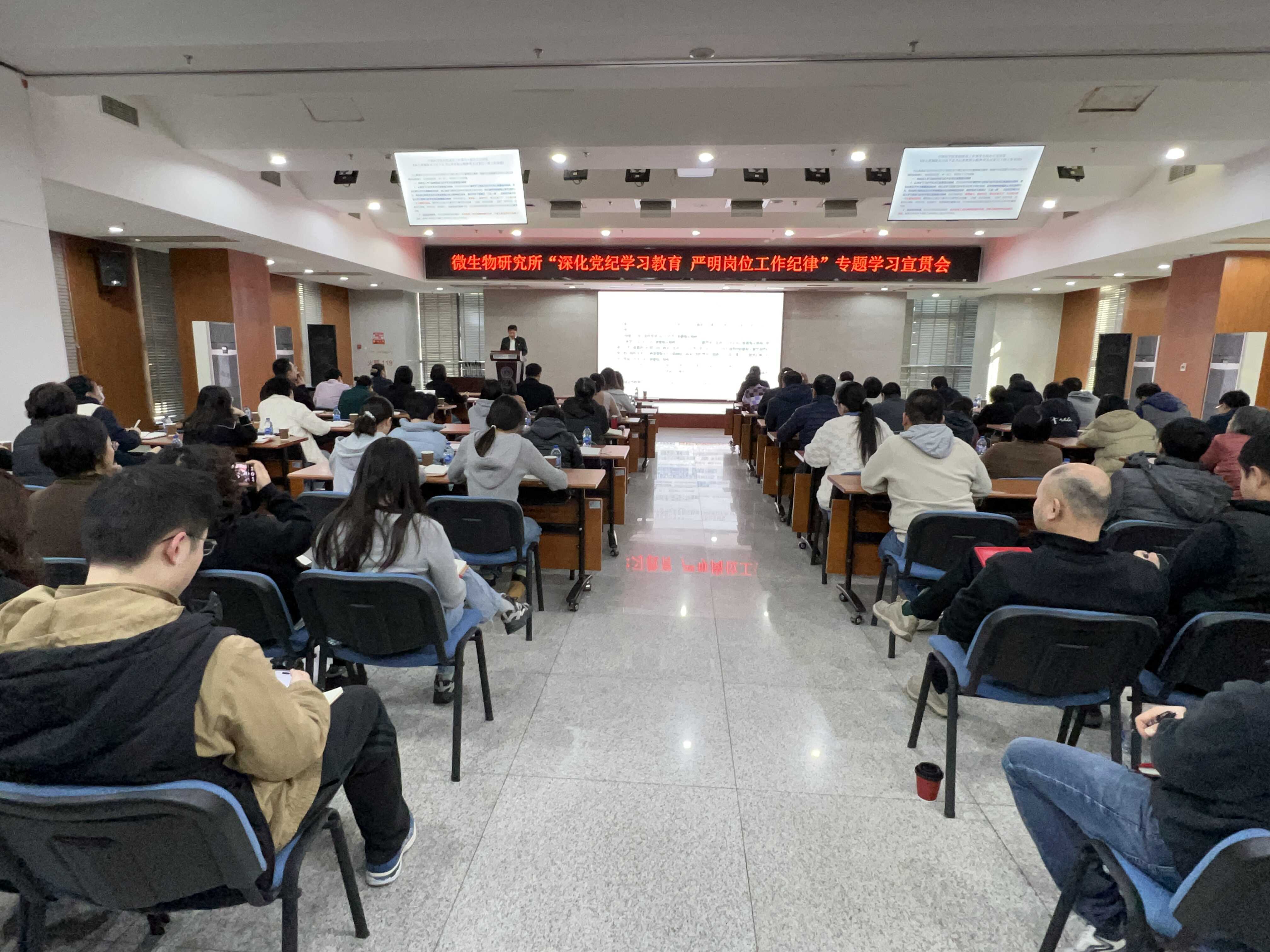 为深入推进“深化党纪学习教育 严明岗位工作纪律”专项工作,持续提升党纪学习教育成效,以严明的纪律为抢占科技制高点核心任务顺利实施提供有力保障,2月24日微生物研究所召开专题学习宣贯会。党委书记、副所长林明炯主持会议,党委副书记、纪委书记杨秀红,各党支部(总支)委员、党小组长代表、管理部门负责人等100多人参加会议。