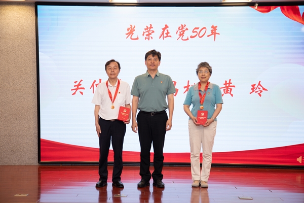 比赛现场高潮迭起,各队精彩的表现赢得阵阵掌声,各支啦啦队的欢呼声此起彼伏。竞赛中场,离退休党员代表饱含深情地演绎了《十送红军》,所领导向“光荣在党50年”纪念章获得者和2024年度微生物所“四好”党员获得者颁发了奖章和荣誉证书。