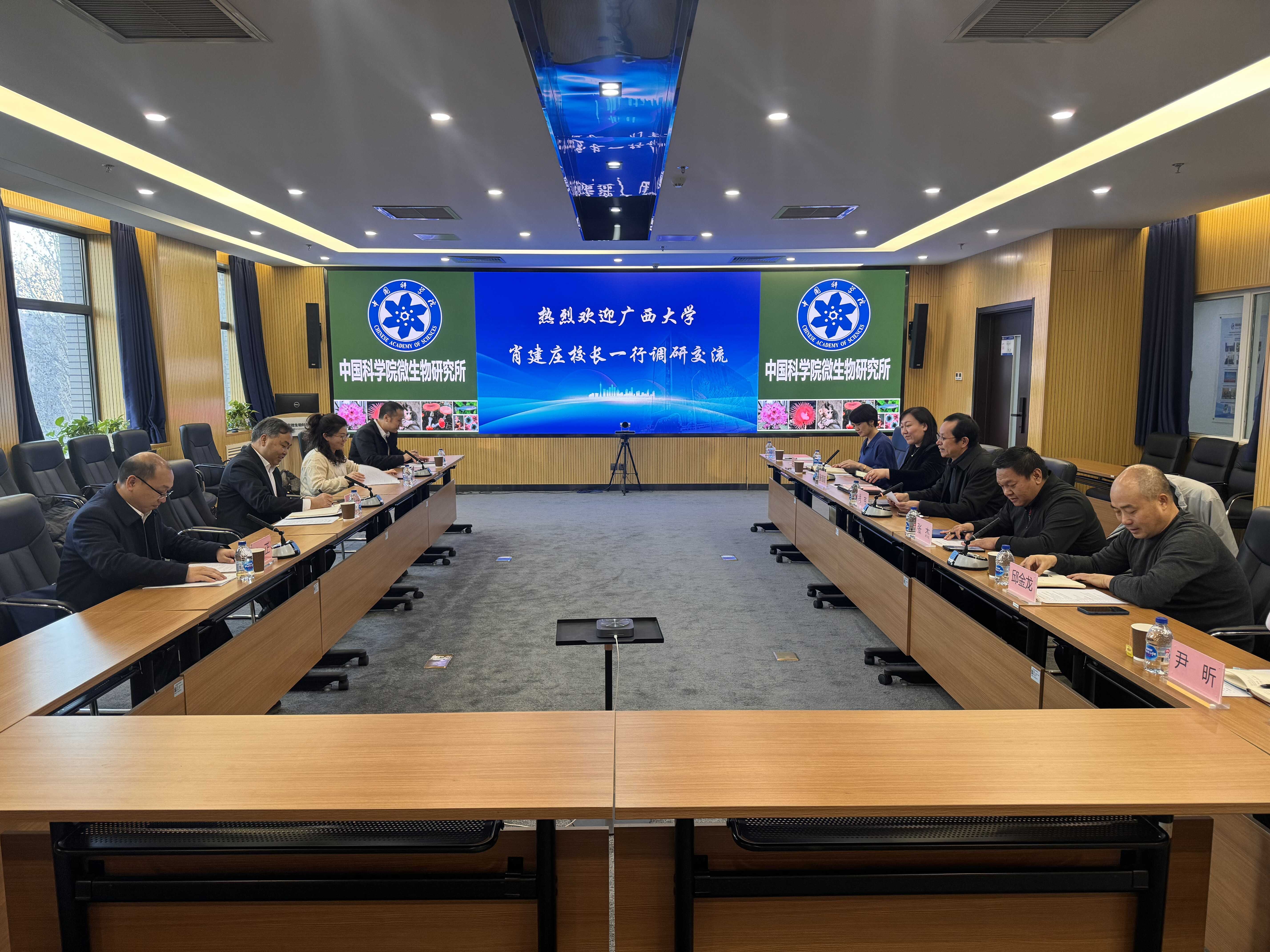 12月8日,广西大学校长、党委副书记肖建庄一行四人来访微生物研究所。双方围绕学科共建、科研协同、人才联合培养等议题展开座谈。