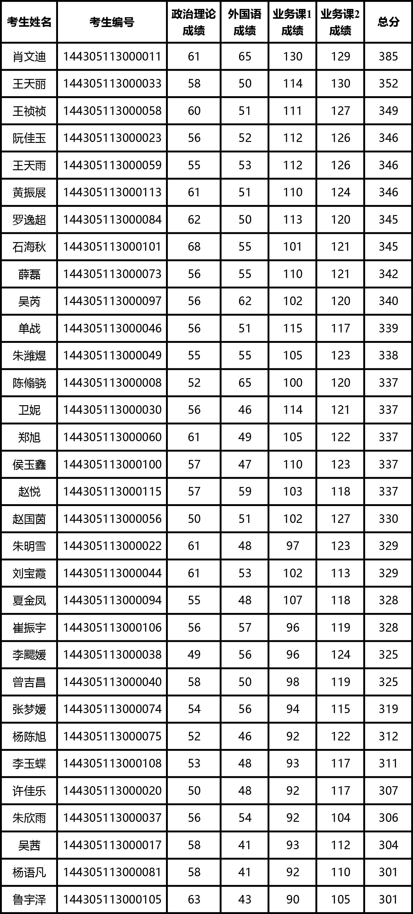 考生复试成绩为百分制,含英语听力及口语30分、业务能力50分、综合素质20分。考生总成绩由复试与初试成绩按比例加权后得出(复试与初试成绩各占50%)。