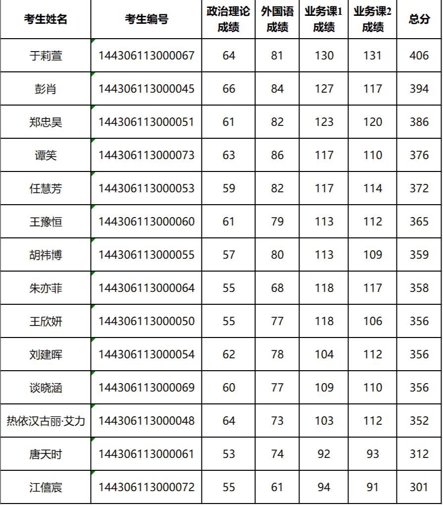 考生复试成绩为百分制,含英语听力及口语30分、业务能力50分、综合素质20分。考生总成绩由复试与初试成绩按比例加权后得出(复试与初试成绩各占50%)。